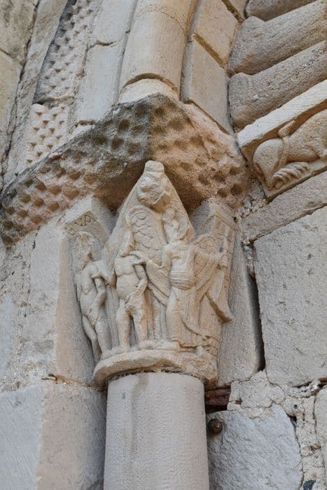 Edifice très remanié. Il ne subsiste plus que les fenêtres romanes de l'abside et les chapiteaux historiés de la porte sud du transept. Le clocher, la nef et les voûtes sont modernes.