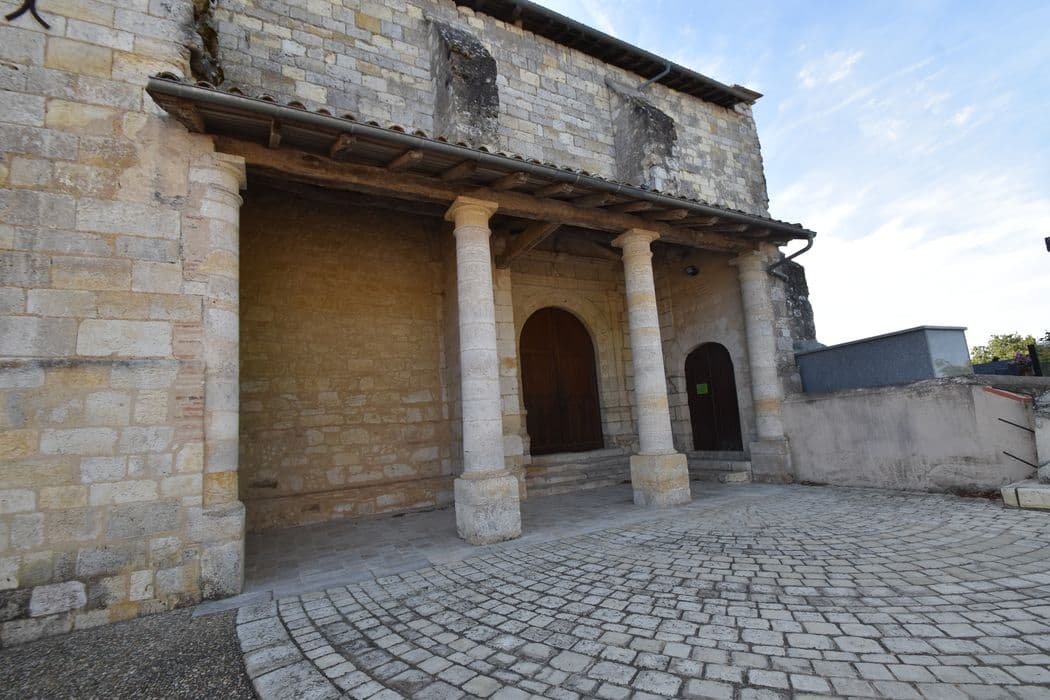 Eglise à l'origine romane (12e siècle), rebâtie à la fin du 16e siècle en conservant les bases plus anciennes et quelques éléments de l'édifice antérieur. Elle n'a jamais été terminée (voûte jamais réalisée). L'édifice se compose d'un choeur à cinq pans et d'une nef de quatre grandes travées. Il reste aujourd'hui deux chapelles dont l'une servit autrefois de chapelle seigneuriale. Autrefois, chaque travée était bordée par une chapelle latérale. Seule la troisième travée à gauche, où se trouve le portail, n'en avait pas. Ce portail date du 17e siècle et se compose de pilastres cannelés à chapiteau ionique, et est surmonté d'un fronton triangulaire avec écusson. Un clocher-mur, ajouré de plusieurs baies campanaires, s'élevait autrefois au-dessus de la façade. Refait en 1879, il fut détruit par l'ouragan de 1913. Après la Première guerre mondiale, il fut remplacé par un campanile.