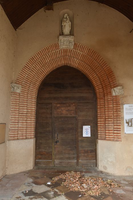 Ruinée par la guerre de Cent ans, l'église fut rebâtie dans le style gothique de 1515 à 1530 sur l'emplacement de la chapelle de l'ancien couvent de l'ordre de Fontevrault dont il reste quelques vestiges. Entièrement en briques, l'édifice ne comporte aucun élément sculpté. Il présente une seule nef avec chapelles latérales. Sur la façade orientale, clocher en briques en forme de pignon ajouré d'arcatures servant de logement aux cloches (cinq arcades réparties sur trois étages), et flanqué d'une tourelle circulaire contenant un escalier à vis. D'importantes réparations furent effectuées probablement après 1623. C'est sans aucun doute à cette date que le clocher fut reconstruit ou fortement remanié. Au nord, portail gothique. Le mobilier conserve quelques pièces d'un prieuré de l'ordre de Fontevrault, disparu à la Révolution.