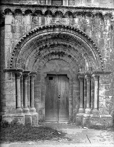 L'église est, dans son ensemble, un édifice du 12e siècle, à nef unique et chevet plat, remanié à plusieurs époques. La façade occidentale est entièrement ancienne et se présente comme un exemple très bien conservé d'architecture rurale de la fin du 12e siècle. Le mur pignon est percé au centre d'une fenêtre plein cintre avec archivolte et boudin torique retombant sur deux colonnettes aux chapiteaux à feuillages. En-dessous se trouve un porche en saillie recouvert de dalles en glacis. La corniche est composée d'une série d'arcatures retombant sur des modillons à têtes grotesques et composée en blocs de pierre d'un seul morceau, évidés, dont le joint vertical est dans l'axe des arceaux, suivant le type poitevin. Le portail est à six colonnes monolithes aux chapiteaux à feuillages. L'archivolte extérieure est ornée de cabochons. Le premier et le troisième rang de claveaux sont ornés de tores et de pointes de diamant. Le second rang est orné d'un tore et de cabochons. Les tailloirs sont ornés d'une corde tressée.