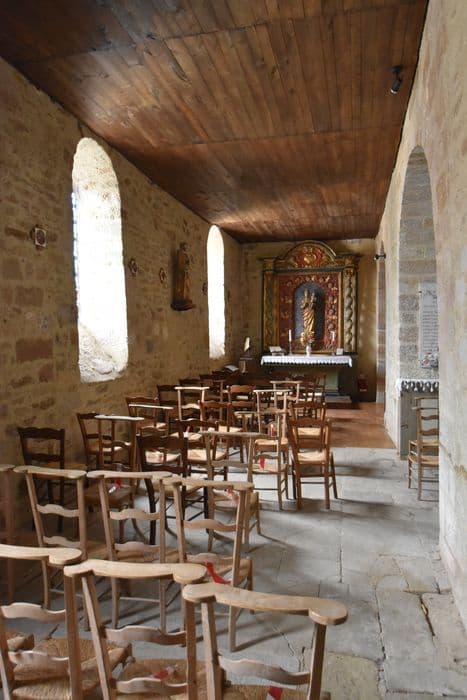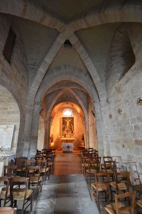 Au 9e siècle (vers 855) , se trouvait être la paroisse primitive de Beaulieu-sur-Dordogne. Eglise à nef unique, la première travée étant voûtée en berceau, les trois autres sur croisées d'ogives. Six colonnes rondes à demi-engagées, à bases enterrées, à chapiteaux feuillurés à volutes, supportent des arcs doubleaux plein cintre. Huit colonnettes encastrées, à chapiteaux feuillurés, reçoivent les arcs diagonaux. Clocher à pignon très aigu dépassant la toiture.