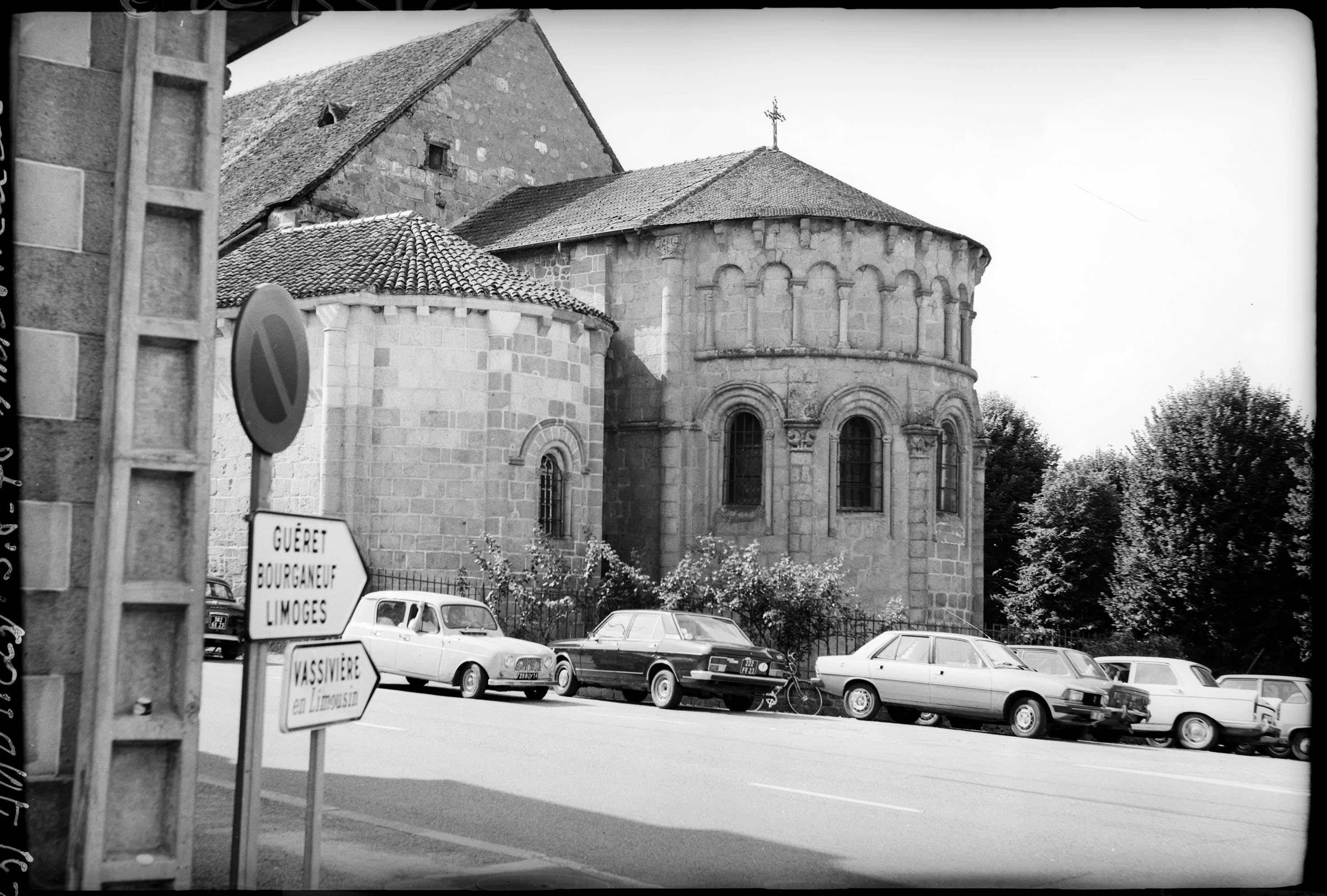 Eglise à partie orientale (choeur, absidiole sud et crypte) romane et nef du 18e siècle. Choeur du milieu du 12e siècle avec chevet à six larges fenêtres en plein-cintre à mouluration limousine, sous archivolte, séparées par des contreforts-colonnes aux chapiteaux sculptés d'animaux fantastiques et de végétaux et couronnées, en deuxième niveau, d'une arcature d'inspiration berrichonne. Absidiole sud restaurée en 1932 par E. Harot. Travaux de reconstruction de la nef confiés en 1770 à Joseph Brousseau (1734-1797) , qui proposa un vaisseau voûté d'un berceau en anse de panier en lattis plâtré, éclairé de hautes fenêtres et élargi de deux chapelles à trois pans formant les bras de la croix. Clocher octogonal en façade s'inspirant du clocher primitif qui se trouvait à la croisée.