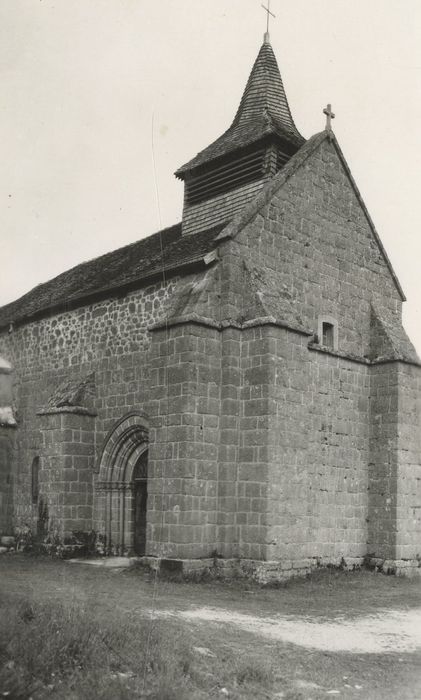 Le patronage de cette église appartenait à l'évêque de Limoges. L'édifice comprend une nef de deux travées, terminée par une abside semi-circulaire couverte d'une voûte en cul-de-four (11e-12e siècle). Une chapelle nord a été ajoutée au 16e siècle, sur la deuxième travée. Chapiteaux sculptés. L'église a été fortifiée aux 14e-15e siècles. L'élément le plus important de cette fortification a été la tour montée sur l'abside, qui conserve une meurtrière cruciforme. Le portail nord est en tracé brisé, à boudins, colonnettes et chapiteaux formant frise ; chaque jambage est orné d'un visage humain. Une sculpture archaïque représentant un homme barbu a été remployée à gauche de l'archivolte du portail.