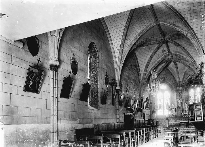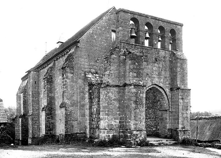 Eglise composée d'une nef à quatre travées, la dernière constituant le choeur. Cette dernière travée polygonale, est établie sur un plan peu usité : un demi hexagone dont les deux côtés qui ferment le chevet présentent leur angle saillant, comme une sorte d'éperon extérieur, dans l'axe longitudinal de l'édifice. Cette disposition est couronnée à l'extérieur par une tablette d'entablement circulaire portée par des crochets s'engageant dans les parements des deux pans coupés. En avant de la façade ouest se trouve la base d'un clocher d'une époque légèrement antérieure à l'édifice. Les murs sont dérasés à environ six mètres du sol. Le porche que forme ce rez-de-chaussée de l'ancien clocher est à ciel ouvert et sans abri. Les cloches sont installées dans une sorte de campanile en maçonnerie posé sur le dérasement du mur de face. Une crypte s'étend sous le choeur et sous la travée de la nef contigüe. La crypte se compose d'une travée carrée, voûtée en berceau ogival, formant nef et d'une abside demi-circulaire voûtée en quart de sphère.
