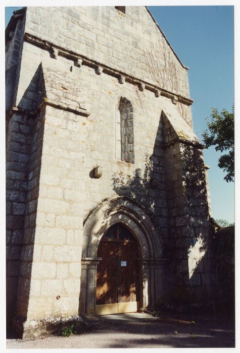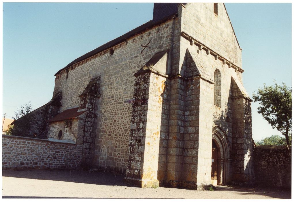 D'après la tradition, l'église aurait été donnée à Saint-Martial de Limoges en l'an 833. Puis, ce fut une dépendance de l'archiprêtré d'Anzème. L'église du 12e siècle comprend une nef unique de deux travées terminées par une abside semi-circulaire. Une sacristie contre le chevet et une chapelle au nord ont été ajoutées. La façade occidentale s'ouvre par un portail de type limousin remanié, au cintre brisé à boudin sur colonnettes et chapiteaux formant frise. L'ensemble du bâtiment a été fortifié et rehaussé. Modillons sculptés d'animaux et de figurations humaines. Le chevet a été surélevé par une tour aujourd'hui arasée. Il a conservé des vestiges de hourds et de meurtrières. Un arc triomphant en anse de panier marque l'entrée du choeur. Il repose sur des chapiteaux ornés de crochets et de palmettes. Le choeur est voûté en cul-de-four.