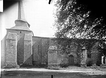 L'édifice a été élevé au 13e siècle mais il a subi de nombreux remaniements du 15e au 18e siècle, et au 20e siècle. L'église se compose d'une nef avec deux chapelles latérales formant transept. La nef comprend quatre travées voûtées avec des arcs en pierre, de la fin du 14e siècle, avec doubleaux diagonaux et formerets, reposant sur des demi-colonnes engagées. Les quatre angles de la croisée sont décorés de quatre grosses colonnes antérieures aux précédentes, avec chapiteaux du 13e siècle. Un oculus est situé à la rencontre des diagonaux. Les deux chapelles du transept ainsi que le choeur sont voûtés avec des arcatures du 14e siècle. Les colonnes et leurs chapiteaux sont antérieurs aux arcatures de la voûte et paraissent de la fin du 12e siècle. Les voûtes primitives se seraient effondrées après la déformation des murs, due à la poussée des voûtes primitives. Celles existantes auraient été reconstruites à la suite. A l'extérieur, un clocher est construit à la croisée du transept.