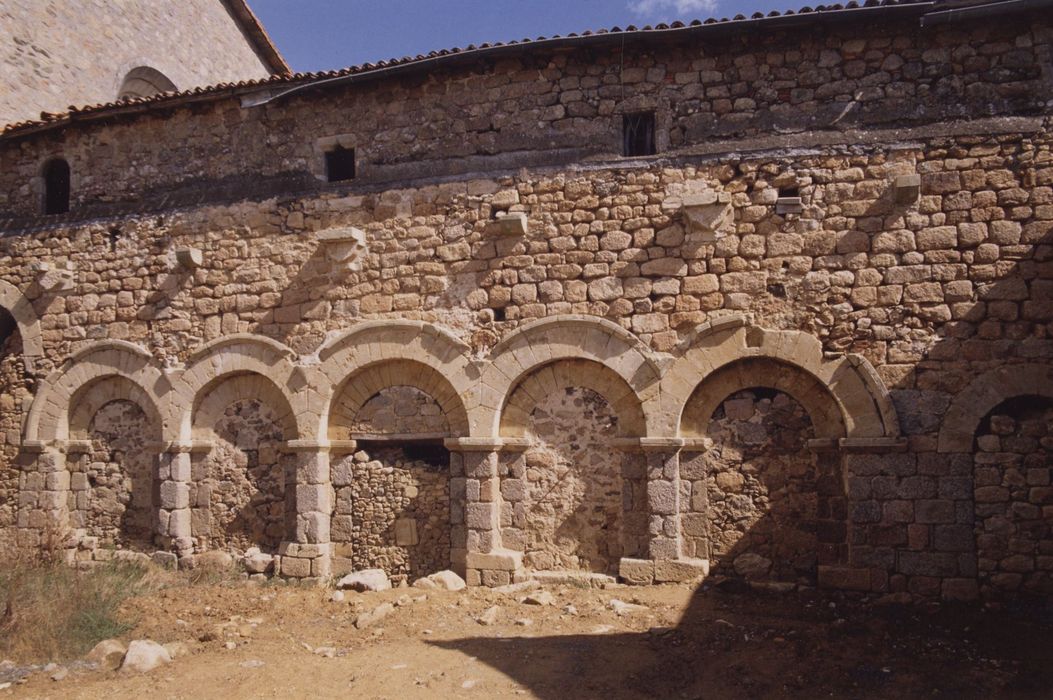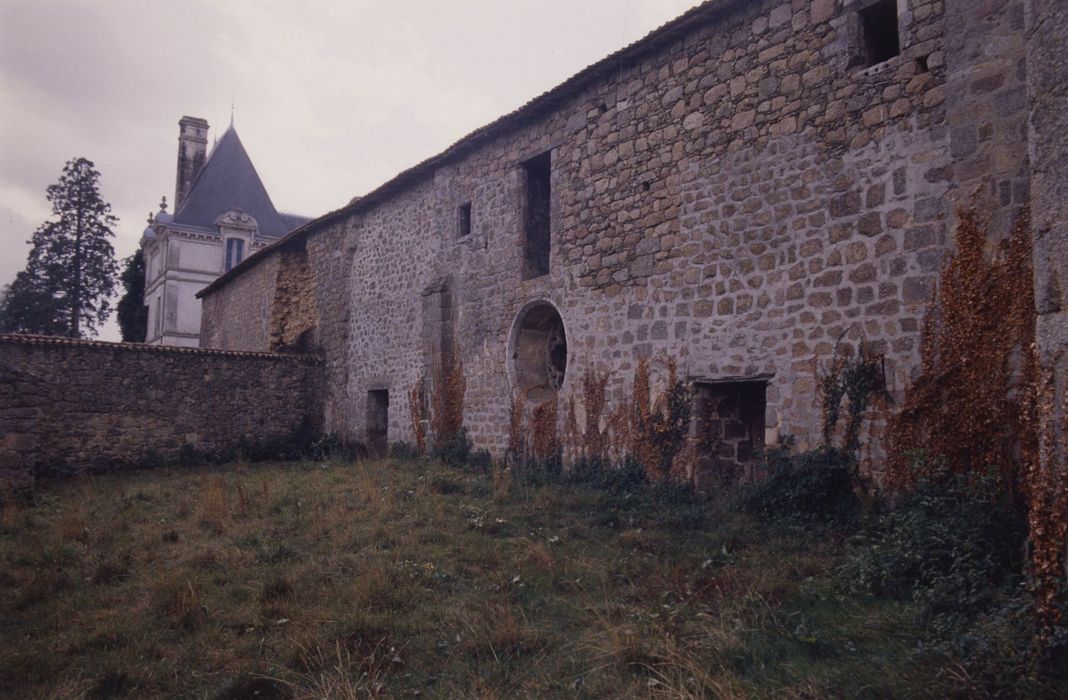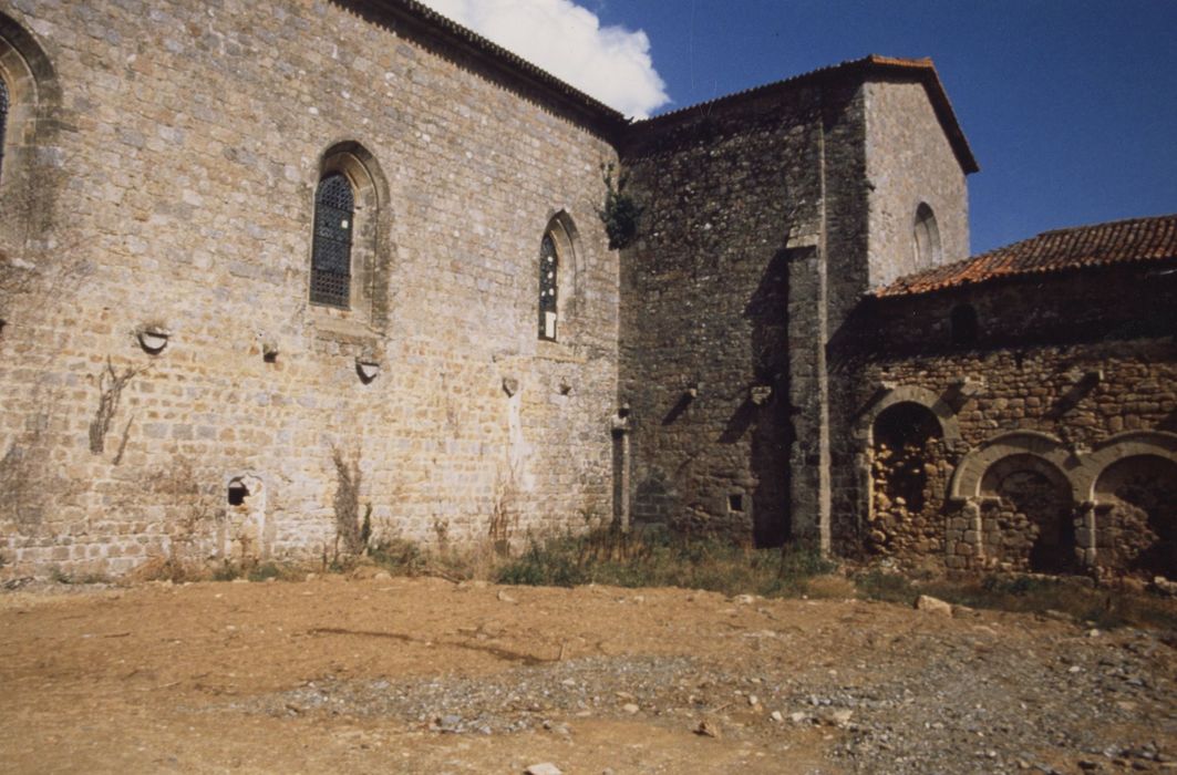 Abbaye bénédictine fondée en 1120 par Giraud de Salles. Restaurations de 1456 à 1482. Placée sous le régime de la commende, l'abbaye connaît un relâchement progressif des moeurs. Au 17e siècle, construction de quelques bâtiments. Au 18e siècle, la vie communautaire n'est plus observée. L'ensemble est dispersé aux enchères à la Révolution. De l'abbaye ne subsistent que l'église, l'aile Est du cloître avec la salle capitulaire, le prieuré et quelques constructions. L'aile Est, renfermant l'ancienne salle capitulaire suivie du cellier et de la boulangerie, est en moellons de granit et pierre de taille calcaire. Elle date de la période romane, avec cinq arcatures en plein cintre à double rouleaux. L'élévation postérieure, en partie écroulée, est éclairée d'une rosace du 13e siècle et de meurtrières. A l'intérieur, une grande salle de terre battue se trouve sous une vaste pièce qui contenait les dortoirs. D'autres pièces ont conservé des culots ou des chapiteaux, anciens supports des voûtes du 15e siècle, sans doute détruites par un incendie en 1715.