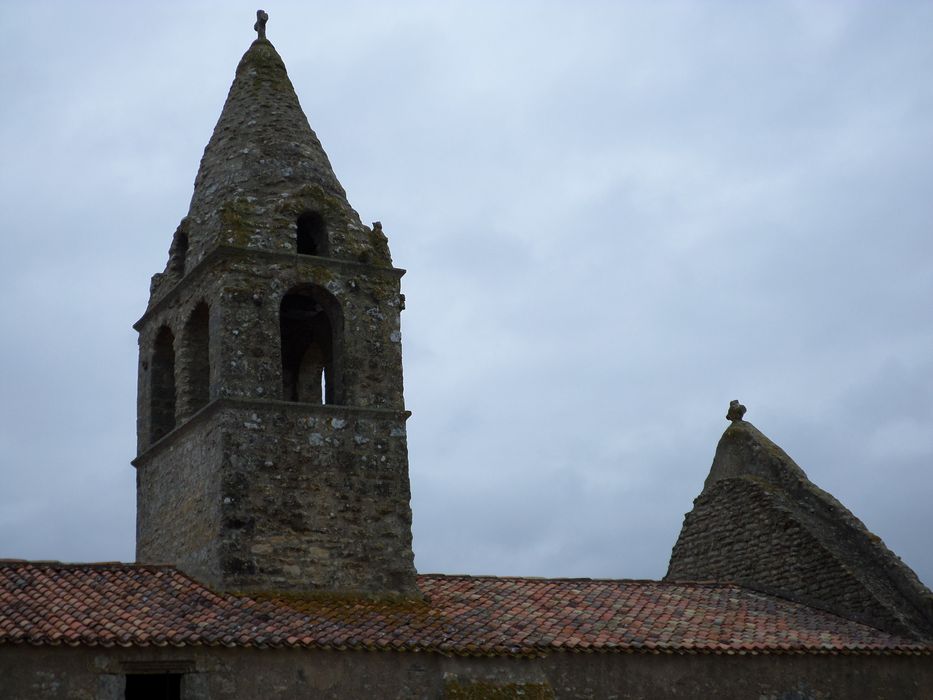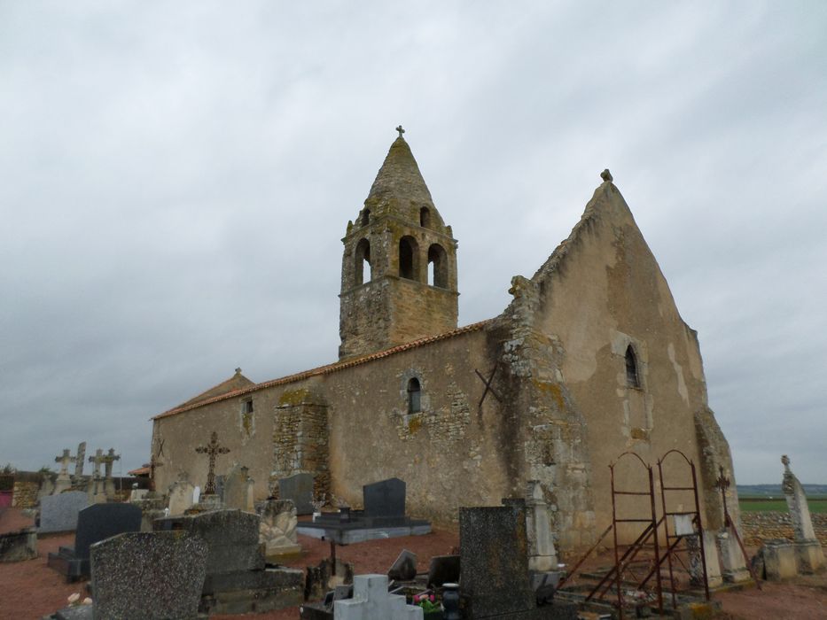 Cette église, construite au 12e siècle, aurait appartenu à un prieuré relevant de l'abbaye de Bourgueil. La tradition locale prétend que, lors de son passage dans la région, saint Martin aurait transformé à cette place un temple païen en un lieu de culte chrétien. A l'ouest, l'édifice s'ouvre par un porche couvert d'une charpente qui repose sur quatre piliers carrés et qui s'adosse au mur de la nef unique, terminée à l'est par un large fronton plat et surmontée d'un clocher en forme de pomme de pin. Les faces est et ouest de ce clocher sont percées de deux arcades ; les faces nord et sud d'une seule. Elles sont surmontées de petites lucarnes. A l'intérieur, la nef unique est séparée du choeur par un mur percé de deux grandes arcades plein cintre. Le dallage comporte des dalles funéraires du 17e siècle.
