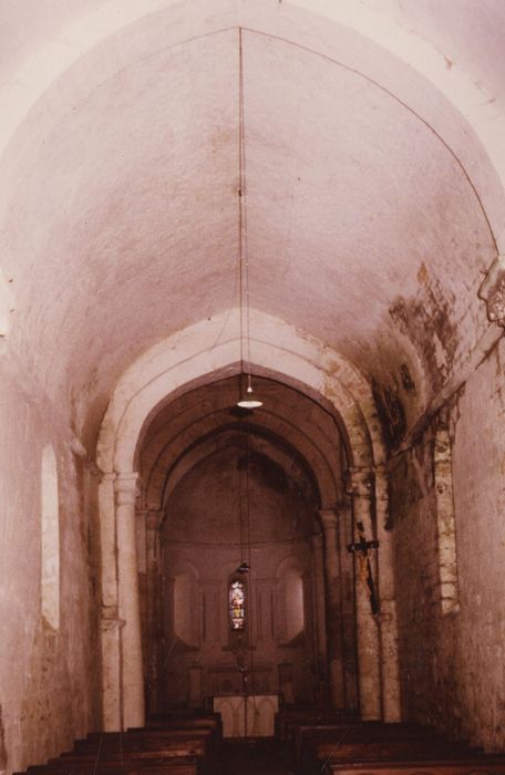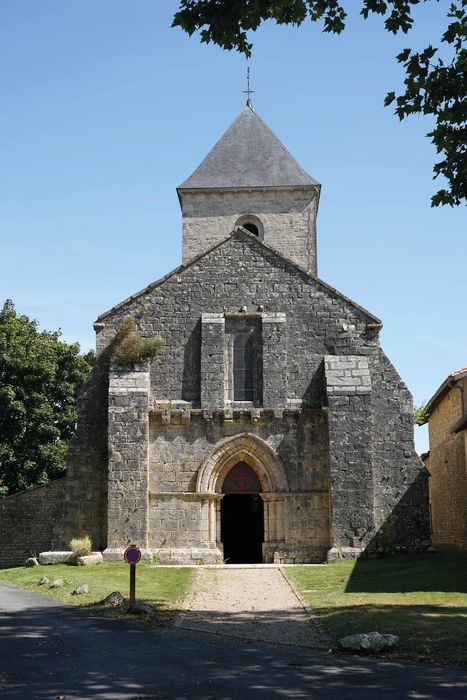 L'église dépendait, à la fin du 13e siècle, du chapitre de Notre-Dame-la-Grande de Poitiers. Les archives du 18e siècle font état de lourds travaux de restauration. En 1836, la voûte s'écroule et est refaite peu après. De 1860 à 1865, des travaux sont réalisés par l'architecte Segretain. L'édifice présente un plan allongé, à nef unique de deux travées, une travée sous clocher et une travée de choeur terminée par une abside. Dans la nef, les arcs doubleaux retombent sur des colonnes à bases moulurées et à chapiteaux sculptés. La travée sous clocher est voûtée d'une coupole à plan carré à la base et sur trompes aux angles. Le portail en arc brisé est à trois rangées de voussures. Le chevet est recouvert de lauzes. La plupart des modillons ont été refaits au 19e siècle. Un clocher carré somme l'ensemble de l'édifice.