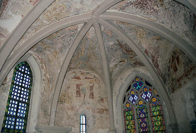 Eglise probablement construite au 12e siècle. Nef et choeur transformés au 14e siècle. Chapelles formant bas-côtés édifiées aux 16e et 17e siècles. Sacristie au sud du choeur ajoutée entre 1760 et 1765. Dans le choeur se trouvent des peintures murales du 15e ou du 16e siècle.
