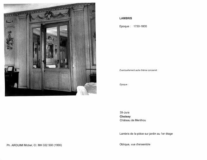 © Monuments historiques, 1992. Cette notice reprend intégralement les termes de l’arrêté de protection au titre des Monuments historiques. Elle répond à l’obligation réglementaire du ministère de la Culture d’établir la liste générale des immeubles protégés (art. R. 621-80 du Code du patrimoine). Elle est donc opposable et fait foi juridiquement. Aucune copie numérique ou papier ne sera fournie par courrier ni courriel. Le dossier de protection complet et l’arrêté sont consultables uniquement sur place, dans la salle de lecture de la Médiathèque du patrimoine et de la photographie (MPP), à Charenton-le-Pont (Val-de-Marne).