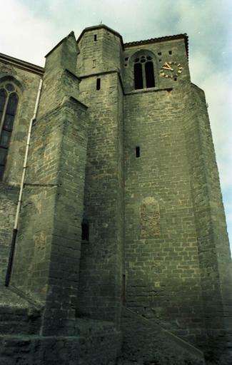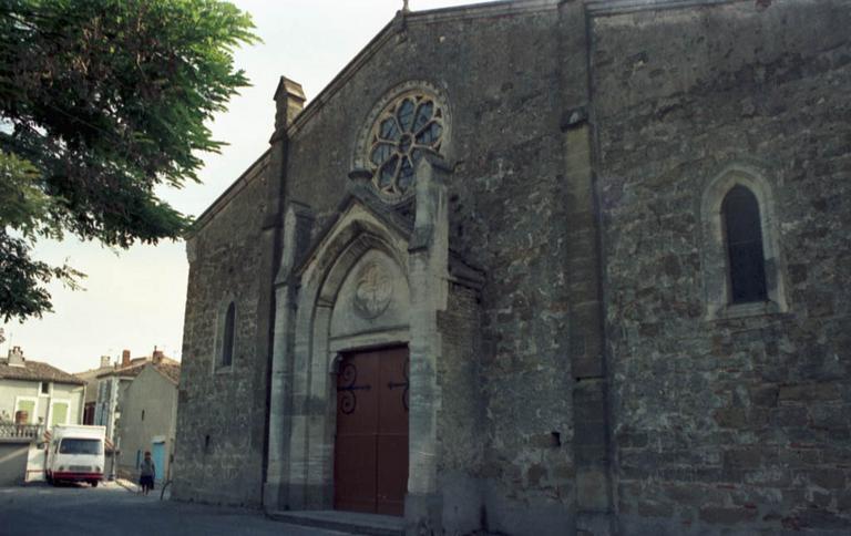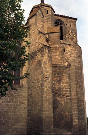 L'édifice appartient au type des églises languedociennes du 14e siècle, avec choeur, nef unique de large ouverture et chapelles entre les contreforts. Son clocher appartient également au type général, massif et de plan carré. Contrairement aux autres églises, il ne se trouve pas à l'ouest mais au nord, à l'emplacement de la chapelle latérale qui correspond au choeur. Cette chapelle forme donc le rez-de-chaussée du clocher. Elle est voûtée d'ogives avec clef circulaire. Les diagonaux et formerets retombent en faisceaux. A l'est, une porte donne accès à l'escalier à vis logé dans une tourelle latérale carrée. Le premier étage forme une salle voûtée. Les retombées des arcs sont portées sur des culots sculptés archaïques. L'étage supérieur n'est pas voûté. Il contient les cloches et est éclairé, à l'ouest, par une petite baie et, sur les trois autres faces, par trois grandes baies à meneau central dont un réseau semble avoir été modifié. Ce clocher a été dérasé. Le couronnement de la tourelle a dû être modifié au 17e siècle. Il est constitué d'une petite voûte en briques pleines dans laquelle est scellée l'armature de fer qui porte une petite cloche. Le bandeau de pierre du sommet est de l'époque primitive.