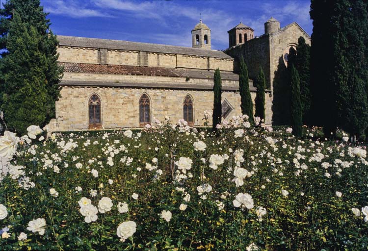 Fondée à la fin du 11e siècle à la suite d'une donation des comtes de Narbonne, l'abbaye est placée sous la dépendance de l'abbaye de Grandselve à Toulouse dès 1143 ; elle devient cistercienne en 1146. Dès le 15e siècle, l'abbaye devient une simple commende, puis au 17e siècle elle n'est plus qu'un bénéfice au profit de l'évêque de Perpignan. Vendue comme bien national à la Révolution, cette abbaye, largement reconstruite aux 17e et 18e siècles, subit quelques destructions. A nouveau occupée par des religieux, les bernardins, qui seront expulsés en 1901, elle sera acquise par Gustave Fayet en 1908. Celui-ci s'attache à la remise en valeur de l'abbaye : cloître dès 1908, puis ensemble de l'abbaye dès 1910. L'abbaye présente un plan formé par deux quadrilatères : le premier, d'époque médiévale, comporte l'église, la salle capitulaire, la salle des morts et le cellier ouest (12e siècle) et le cloître (seconde moitié du 13e siècle) ; le second est formé de trois corps de bâtiment du 18e siècle et d'un bâtiment du 12e siècle surélevé au 15e siècle. A l'intérieur de ce dernier, sont situés : le salon vert - caractérisé par ses boiseries du 18e siècle -, l'ancien réfectoire converti en grand salon - toiles peintes par Burgstaal avec des scènes d'inspiration wagnérienne -, le grand salon et la salle à manger décor d'azulejos - et la bibliothèque - décorée par Odilon Redon en 1911.