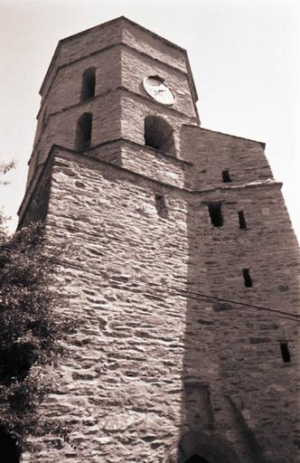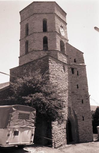 L'église se compose d'une abside à cinq pans, d'une nef de quatre travées, de six chapelles latérales (trois de chaque côté) et d'un clocher formant porche. Les voûtes de l'abside formant cul de four à pans paraissent en briques. Les voûtes de la nef sont en briques portées sur diagonaux en briques et plâtre. Les chapelles sont voûtées d'arête. L'importance des contreforts laisse supposer que l'église primitive n'était pas romane mais du 14e ou du 15e siècle, probablement à charpente apparente ou à plafond de bois, sans doubleaux. La porte d'entrée en ogive du clocher est en pierre de taille. Sont également en pierre avec arcs en accolade, les deux portes donnant dans la cage d'escalier en saillie, à l'angle sud-ouest du clocher. Ces portes datent du 15e siècle. Le rez-de-chaussée formant porche est sur plan carré et voûté d'arête. Le premier étage, sur le même plan, est couvert de voûtes en arc de cloître. Les deux étages au-dessus sont octogonaux avec chacun huit fenêtres assez allongées. Un dernier étage bas semble avoir comporté un crénelage et formait probablement parapet au-dessus d'une plateforme portée par une voûte dont les amorces s'aperçoivent à l'intérieur. La partie octogonale semble postérieure à la partie carrée.
