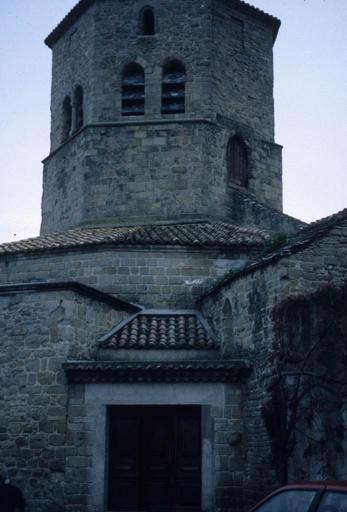 Eglise à plan centré, couronnée par une tour polygonale élevée sur la voûte en coupole qui forme le centre de l'édifice.
