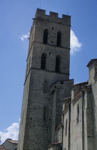 Construction du 14e siècle caractéristique de l'architecture gothique méridionale propagée par les ordres mendiants. Edifice à large nef unique bordée de chapelles latérales couvertes de voûtes sur croisée d'ogives. Au 17e siècle, l'effondrement des voûtes du choeur entraîna d'importants travaux, notamment l'édification d'un nouveau sanctuaire à l'ouest et la construction d'une nouvelle façade à l'est. Le voûtement du chevet porte la date 1780. Au 19e siècle, l'architecte Vignol est chargé du voûtement de la nef, en remplacement de la charpente. L'édifice est construit en galets de rivière pour le gros oeuvre et en granit appareillé pour les murs boutants qui séparent les chapelles, les chaines d'angle et la façade principale. Le clocher du 14e siècle s'inscrit dans la tradition des hautes tours romanes catalanes.