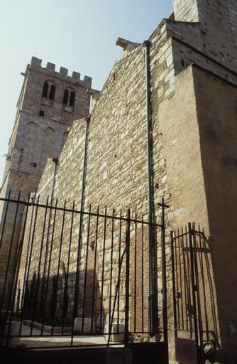 L'église, de fondation romane, se compose aujourd'hui d'une vaste nef voûtée d'ogives avec chapelles latérales entre contreforts. La nef primitive du 12e siècle devait être recouverte d'une charpente. Un grand pignon percé d'une seule fenêtre la ferme à l'ouest. L'ancienne abside a disparu et fait place à l'accès actuel. Les voûtes en pierre qui la recouvrent datent de la fin du 14e siècle. Les murs goutterots ont été percés d'arcatures pour donner accès à des chapelles latérales probablement au 18e siècle (date de 1768 sur l'une des archivoltes). La première chapelle côté sud, au long du clocher, paraît d'origine. Le clocher date du 12e siècle sauf pour la partie supérieure. Il comprend deux étages voûtés en berceau d'ogive, avec arcatures et bandes extérieures à la mode lombarde. Le dernier étage, percé de baies géminées, est crénelé.