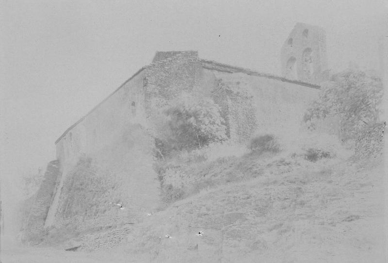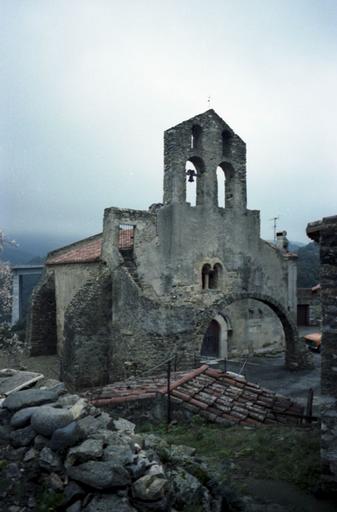 Edifice rectangulaire dont le mur oriental est occupé par une abside et deux absidioles demi-circulaires. Le mur occidental est surmonté par un clocher-mur triangulaire à deux étages ajourés chacun de deux baies campanaires. Au-devant, une grande arcade demeure le seul vestige d'un porche ruiné. Contre le pilier nord de cet arc s'appuie un escalier extérieur dont les deux volées droites donnent accès aux toitures et au clocher. Au-dessus de la porte du mur du fond, s'ouvre une fenêtre géminée dont la colonnette médiane supporte un chapiteau décoré, sur ses quatre faces, d'entrelacs carolingiens. A l'intérieur, le vaisseau est divisé en trois nefs : une nef centrale de deux nefs latérales, séparées les unes des autres par des arcades. Chacune des nefs est prolongée par une abside demi-circulaire dont elle est séparée par un étroit passage transversal formant une sorte de transept. L'abside centrale est seule ornée de peintures murales du 12e siècle.