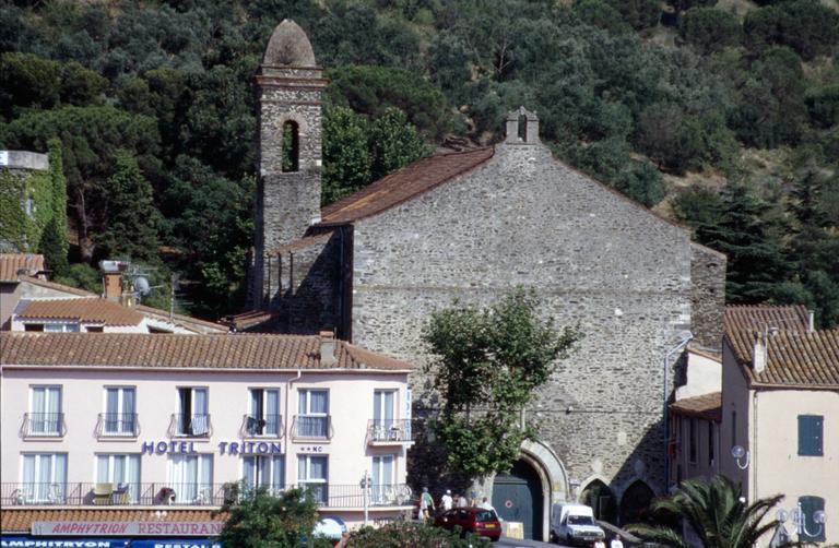 Le couvent des Dominicains était l'un des trois de cet ordre installé, au 14e siècle, dans la région roussillonnaise. Le premier établissement des Dominicains à Collioure remonte à 1275. Les travaux de construction de leur couvent durent être commencés cinq ans plus tard. Cette première église subit des transformations entre 1452 et 1457. Un cloître, disparu, s'élevait au sud de l'église qui seule subsiste de l'ancien couvent. Le couvent fut désaffecté à la Révolution et l'église servit de magasin militaire jusqu'en 1925. L'édifice se compose d'une nef à chevet plat. Une grande niche plate est creusée dans les murs des petits côtés. Cinq chapelles voûtées d'ogives ont été bâties entre les contreforts de la partie ouest de la nef. Cette dernière est couverte d'une charpente apparente reposant sur des arcs diaphragmes de tracé légèrement brisé. La charpente se compose d'un faîtage et de trois pannes par versant. Une panne supplémentaire, accolée aux goutterots, existe en quelques endroits. Certaines de ces pannes sont décorées de motifs géométriques peints. Il est vraisemblable que la partie la plus importante de cette charpente remonte au 15e siècle. La façade principale s'ouvre par un portail en marbre. A la droite de celui-ci subsistent deux enfeux du 15e siècle.
