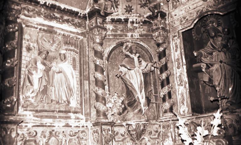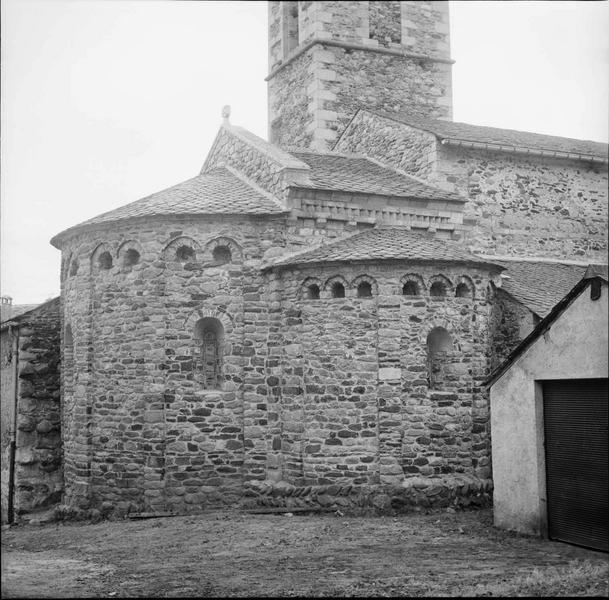 L'édifice date vraisemblablement du 11e siècle et se composait alors d'une nef voûtée en berceau continu, d'un choeur voûté en berceau simple sur lequel s'ouvraient deux absidioles demi-circulaires voûtées en cul de four, d'une abside demi-circulaire voûtée également en cul de four, d'un clocher-peigne sur pignon ouest. Les murs étaient construits en moellons mal assisés. Il ne reste de la porte primitive que les pentures en fer forgé, le portail lui-même ayant disparu. A une époque difficile à préciser, la voûte en berceau de la nef a été reconstruite avec des pénétrations latérales ou alors on s'est contenté de créer ces pénétrations. A l'extérieur, sur la face nord de la nef se voit une bande de pierre de taille qui forme bandeau et semble être le repos de l'ancienne corniche ou cette dernière retournée au moment de l'exhaussement. C'est vraisemblablement à ce moment que fut supprimé le clocher-peigne, remplacé par un clocher carré au sud de l'abside dont il ne susbsiste que l'étage inférieur. Au 18e siècle, construction des chapelles du Rosaire et du Christ, ornées de boiseries et de peintures. Le clocher moderne date de cette période. Il fut construit sur les murs de la chapelle du Christ, en remplacement du clocher précédent probablement écroulé.