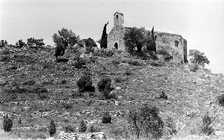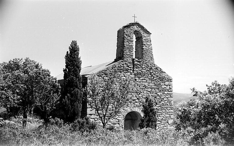 Chapelle rurale isolée qui aurait été donnée en 1178 par Pierre de Domanova à l'abbé de Saint-Martin du Canigou. D'après ses caractères architecturaux, l'édifice a été construit au 12e siècle ou dans les dernières années du 11e. Il est à nef unique et sanctuaire demi-circulaire, sans chapelle latérale. Le mur pignon occidental a été surélevé d'un clocher arcade probablement récent. La porte ancienne s'ouvre au sud. Les deux rouleaux en plein cintre sont composés de claveaux alternativement clairs et foncés, de grès gris et rouge, formant un décor polychrome dont les contrastes sont encore accentués par un bandeau d'archivolte dont les claveaux plats font alterner leurs teintes avec celles du rouleau extérieur. Les vantaux ont reçu un décor de ferronnerie composé de trois traverses horizontales terminées chacune par des volutes opposées, enroulées en spirale. Entre ces traverses, de longueurs décroissantes de bas en haut, sont appliquées des rangées de volutes en S, le tout surmonté par trois fers à cheval. D'autres fers à cheval dessinent un guillochis à la base. L'abside demi-circulaire repose sur un soubassement concentrique saillant. Dans la partie nord de l'abside a été pratiqué un large percement dans lequel a été inséré une colonnette en béton portant un chapiteau roman sculpté de palmettes.
