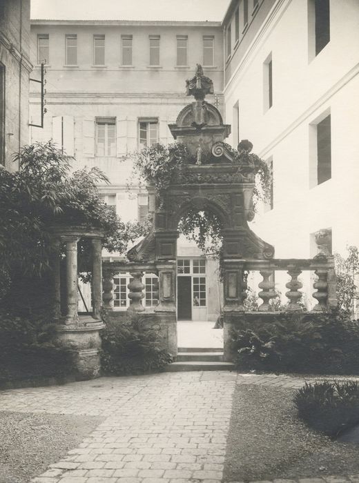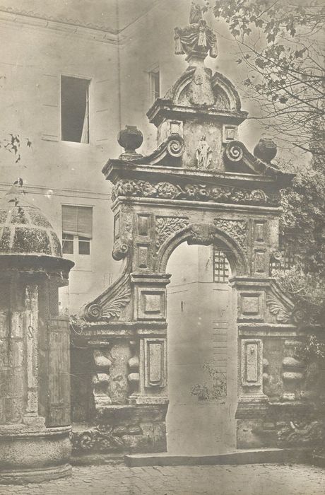 La porte d'entrée du jardin et le puits du 17e siècle : inscription par arrêté du 4 mars 1925