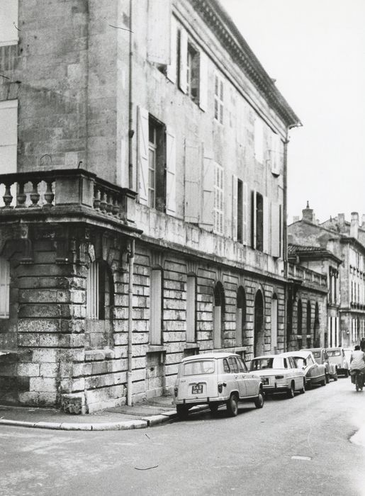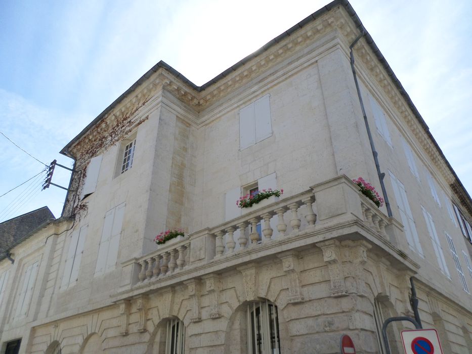 L'emplacement de ce quartier correspond à l'ancienne réserve de chasse du château d'Angoulême, lotie aux 18e et 19e siècles. Le rez-de-chaussée est séparé des étages supérieurs par un bandeau droit. Il s'ouvre par une porte cintrée, encadrée irrégulièrement de baies. Dans l'angle de la rue, au rez-de-chaussée, deux murs supportent une terrasse bordée de garde-corps formé de balustres en pierre. Les baies présentent une clé saillante et cannelée, et sont surmontées d'un entablement supporté par des consoles cannelées avec gouttes. La corniche est formée de denticules.
