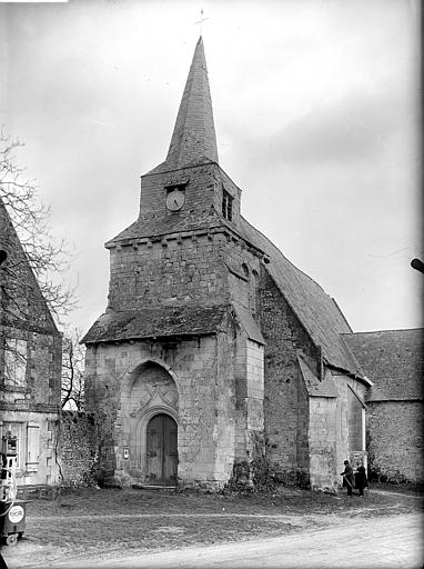 Nef de style flamboyant. Chevet plat. Au nord et au sud, deux chapelles de même style, celle du nord étant couverte à liernes et tiercerons. L'entrée de cette église du 15e siècle se fait par un clocher-porche du 12e, à coupole à oeil sur trompes. La tour du clocher est ouverte, sur ses faces nord et sud, de deux baies en plein cintre surmontées d'une corniche ornée d'étoiles, supportée par des modillons à têtes. Les voûtes de l'église reposent sur des supports sans chapiteaux.