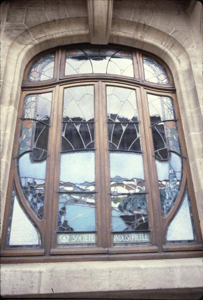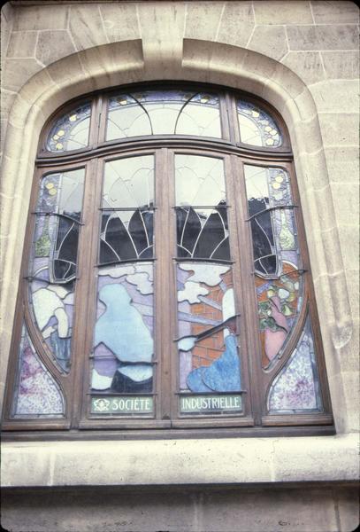 Edifice construit entre 1906 et 1908 par les architectes Emile Toussaint et Louis Marchal pour la Chambre de Commerce et la Société Industrielle de l'Est. Ferronneries exécutées par les ateliers Majorelle. Décor sculpté et verrières par Jacques Gruber inspirés de l'Ecole de Nancy (ensemble exécuté en 1909). Salle de réunion décorée de lambris en pâte de verre décorés de chardons et réalisés par Almaric Walter.