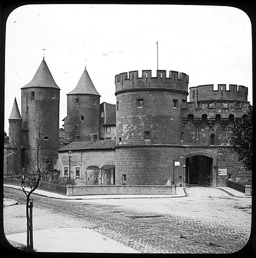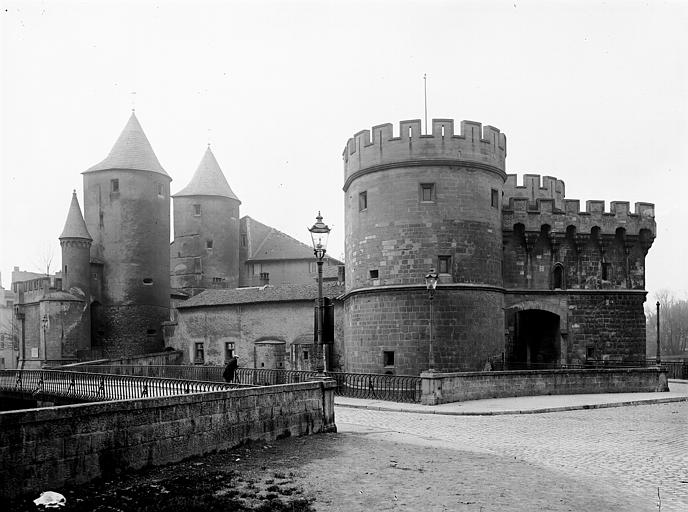 Les anciens remparts (restes) situés au nord et au nord-est de l'Arsenal : inscription par arrêté du 12 octobre 1929 - La tour Camoufle : inscription par arrêté du 31 octobre 1929 - La tour des Esprits ; la partie des remparts comprise entre les deux ouvrages précédents ; les constructions dites basses grilles de la Seille : inscription par arrêté du 14 avril 1932 - La Porte des Allemands (cad. 20 5, 6, 7, 9) : classement par arrêté du 3 décembre 1966 - L'ancienne porte de prison transférée de la rue Lasalle sur la face intérieure du rempart médiéval en 1980 (cad. 28 200/118) : inscription par arrêté du 27 octobre 1971