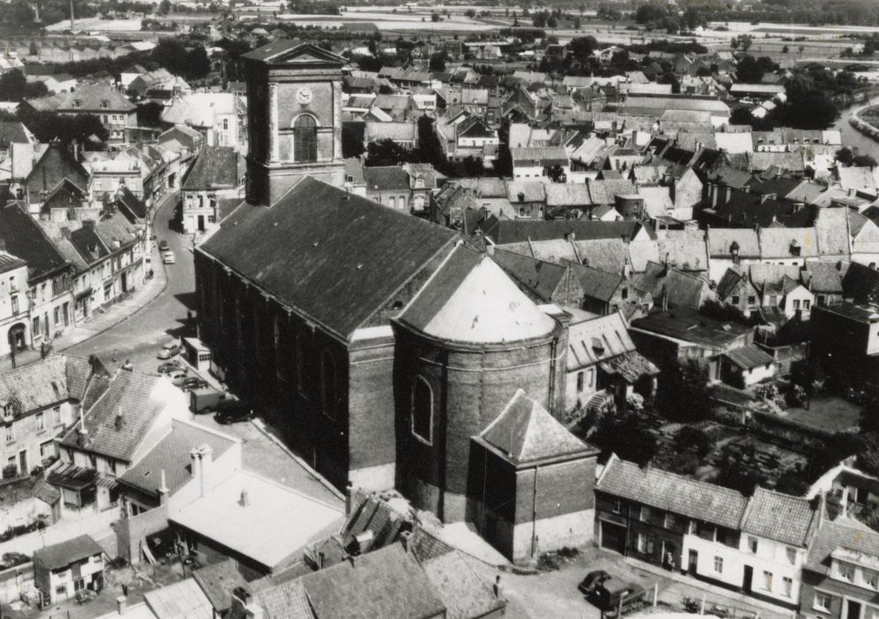 l’abside. Cette abside est de plan circulaire, forme peu fréquente utilisée cependant au 18e siècle pour la chapelle axiale de grands édifices (Saint-Roch à Paris en 1705, plus localement la collégiale Saint-Pierre à Douai vers 1745).