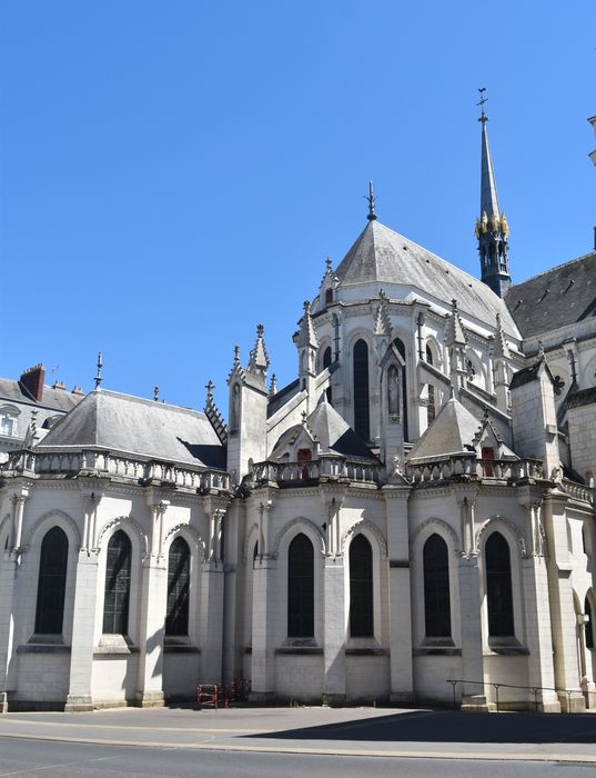 L'ancienne église Saint-Nicolas, qui datait du XVe siècle, était devenue trop exiguë. Dès le milieu du XVIIIe, on songea à reconstruire. Dés 1805, les paroissiens demandaient la remise en état de l'église. Il faut attendre la restauration pour que l'on songe vraiment à la reconstruction. L'architecte OGEE fit adopter en 1825 un projet d'église néo-classique. Mais en 1836, le nouveau curé de Saint-Nicolas, Félix Fournier, imposa l'architecte Alexandre PIEL, qui choisit le retour au gothique du XIIIe siècle. En 1840, PIEL abandonnait le projet pour entrer dans les ordres. C'est Jean-Baptiste LASSUS qui reprit le dossier et fit établir un programme qui fut adopté en 1841. Les travaux furent assez longs. L'édifice fut achevé et inauguré en 1870. Durant la deuxième guerre mondiale, l'église Saint-Nicolas fut très endommagée par les bombardements de 1943 qui détruisirent une grande partie du centre de Nantes. La nef fut crevée sur la dernière travée, ainsi que trois travées du collatéral (liturgique) Sud (géographique : Est). L'église fut restaurée après la guerre par l'architecte GANUCHAUD, qui fut chargé par la commune du suivi de l'entretien de l'église. Les derniers travaux portant sur la flèche, furent conduits entre 1975 et 1978.