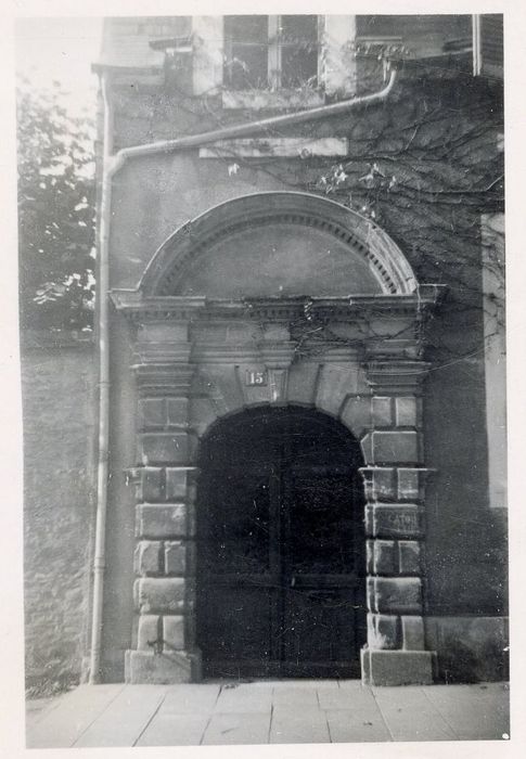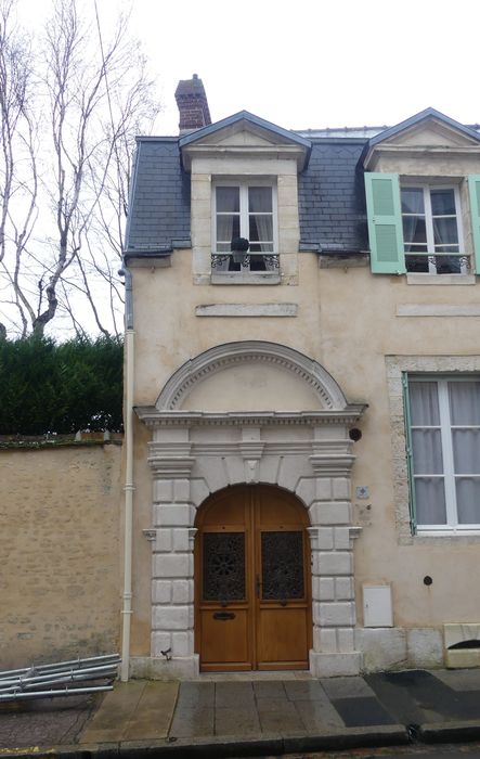 Cette porte faisait partie de l'ancien hôtel d'Aumont de la Vente où était descendu Jacques II d'Angleterre en 1692, chassé de son pays par la Révolution. Par la suite, l'édifice a été partagé en deux parties. La porte présente deux pilastres doriques, au fût appareillé, supportant un entablement classique, surmonté lui-même d'un fronton demi circulaire. Les battants sont faits de panneaux ajourés, contrastant avec les panneaux pleins du bas.