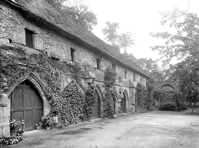L'abbaye, de l'ordre des Prémontrés, a été fondée au 13e siècle, après la conquête de la Normandie par Philippe-Auguste. Jusqu'au 14e siècle, les monastères prémontrés accueillaient des frères convers dont le rôle était d'exploiter les terres dépendant directement de l'abbaye. Après la peste noire et la guerre de Cent ans, les abbayes ont fait exploiter leurs terres (salles) par des métayers. L'église, fondée en 1238, a sans douté été détruite à la Révolution. Construite au 14e siècle, la grange aux dîmes a été incendiée durant la guerre de Cent ans. Sa charpente a été refaite en 1460, reposant sur des poteaux placés sur un support de maçonnerie pour éviter de porter sur des murs fragilisés. La grange est une construction rectangulaire ajourée de fenêtres gothiques en arc lancéolé. La construction de la métairie a repris le principe de la charpente de la grange, avec une différence. Au lieu de faire reposer les poteaux en bois debout sur des socles de maçonnerie, ils portent sur de gros corbeaux saillants du mur. La métairie a été dédoublée au 17e siècle en Salles de Haut et Salles de Bas, avec une cour commune. La ferme des Salles de bas faisait partie de la mense abbatiale ; celle des salles de Haut relevait du tiers lot. £