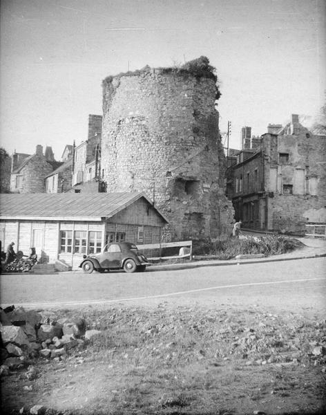 La ville de Domfront fut créée vers 1014 par la construction par Guillaume de Bellême d'un château, probablement en bois, dont elle constituait la basse-cour, elle-même entourée d'une palissade de bois. Entre 1289 et 1304, Robert II d'Artois, neveu de Saint Louis, fit construire 24 tours d'enceinte. En 1382, Pierre d'Alençon hérita de la terre et seigneurie de Domfront. Il fit réparer les fortifications et construire la porte d'Alençon. Au cours du 17e siècle, les remparts devenus sans importance militaire et d'un entretien coûteux, furent vendus à des particuliers. Certaines tours couvertes et habitées furent conservées, d'autres abandonnées, d'autres encore mutilées ou détruites pour en utiliser les matériaux. 14 tours subsistent sur les 24 d'origine.
