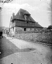 Les Bénédictines vécurent en ces lieux de 1650 à la Révolution. Le pavillon à pans de bois est cependant antérieur de près d'un siècle à la venue des moniales. Il semble que cette construction ait été, à ses débuts, une demeure aristocratique et en même temps un élément défensif de la ville. Ses meurtrières et sa situation à une entrée de rue, paraissent indiquer qu'il s'agissait d'une demeure fortifiée qui avait pour rôle de défendre l'entrée de la ville. La maison est formée de deux bâtiments accolés. La partie la plus ancienne date de la fin du 16e siècle, et comprend un étage à pans de bois surmonté d'une toiture en pavillon dans laquelle ouvre une lucarne à deux vantaux couronnée par une toiture en avancée formant des pans coupés, disposition assez rare en Pays d'Auge. La partie la plus récente date de la fin du 18e siècle et présente une façade à pans de bois classique de trois travées. L'intérieur possède des plafonds à solives apparentes. Des cloisons et un mauvais escalier de bois ont été ajoutés postérieurement.
