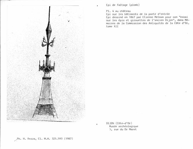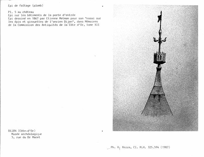 (c) Monuments historiques. Cette notice reprend intégralement les termes de l’arrêté de protection au titre des Monuments historiques. Elle répond à l’obligation réglementaire du ministère de la Culture d’établir la liste générale des immeubles protégés (art. R. 621-80 du Code du patrimoine). Elle est donc opposable et fait foi juridiquement. Aucune copie numérique ou papier ne sera fournie par courrier ni courriel. Le dossier de protection complet et l’arrêté sont consultables uniquement sur place, dans la salle de lecture de la Médiathèque du patrimoine et de la photographie (MPP), à Charenton-le-Pont (Val-de-Marne).
