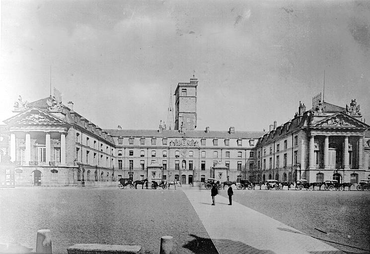 Restes du Palais des Ducs de Bourgogne : grand corps de logis comprenant la salle des Gardes ; tour de Philippe le Bon ; tour de Bar et escalier de Bellegarde ; cuisines ; façades sur la cour d'honneur, couvertures et salles du rez-de-chaussée du bâtiment adossé au grand corps de logis. Restes du Palais des Etats de Bourgogne : façades sur la cour d'honneur et sur la cour de Flore et couvertures de la grande salle des Etats ; vestibules de la grande salle des Etats avec l'escalier monumental de Gabriel et le porche donnant accès de la rue de la Liberté à la cour de Flore ; chapelle des Condé ; façades, couvertures et salles du premier étage du bâtiment donnant sur la cour d'honneur contigu à la chapelle et à la grande salle des Etats ; façades, couvertures et salle du premier étage du bâtiment contigu à la chapelle et donnant sur la cour de Flore et sur la rue des Forges ; façades et couvertures du bâtiment d'angle donnant rue Porte-aux-Lions et cour de Flore avec retour surla rue de la Liberté ; grilles et guérites de la cour d'honneur ; façades sur les deux cours et sur la rue Rameau, couvertures et salle Hébé au premier étage des bâtiments donnant sur la cour d'honneur et sur la cour de Bar ; façades et couvertures du bâtiment donnant sur la rue Rameau et la cour de Bar ; façades sur la cour de Bar et la place des Ducs et couvertures du bâtiment reliant l'escalier de Bellegarde au grand corps de logis du Palais des Ducs. Bâtiments donnant sur la place Rameau : façades et couvertures : classement par liste de 1862, délimité par arrêté du 22 mai 1926