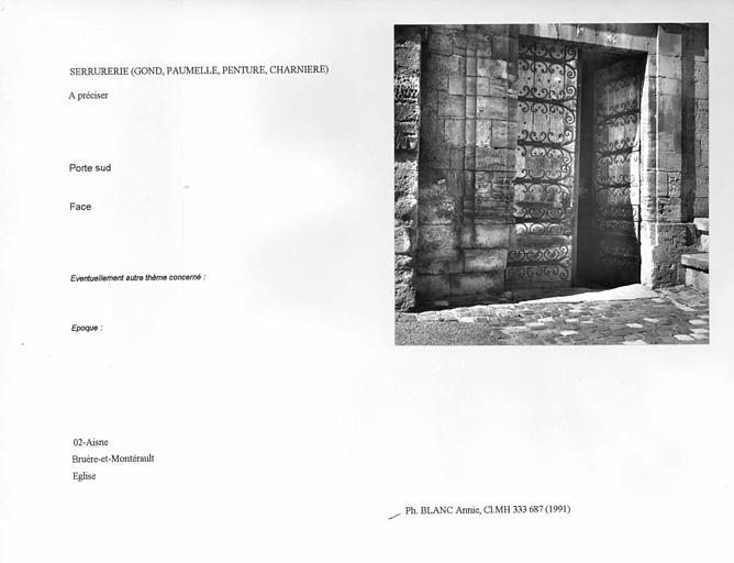 © Monuments historiques, 1992. Cette notice reprend intégralement les termes de l’arrêté de protection au titre des Monuments historiques. Elle répond à l’obligation réglementaire du ministère de la Culture d’établir la liste générale des immeubles protégés (art. R. 621-80 du Code du patrimoine). Elle est donc opposable et fait foi juridiquement. Aucune copie numérique ou papier ne sera fournie par courrier ni courriel. Le dossier de protection complet et l’arrêté sont consultables uniquement sur place, dans la salle de lecture de la Médiathèque du patrimoine et de la photographie (MPP), à Charenton-le-Pont (Val-de-Marne).