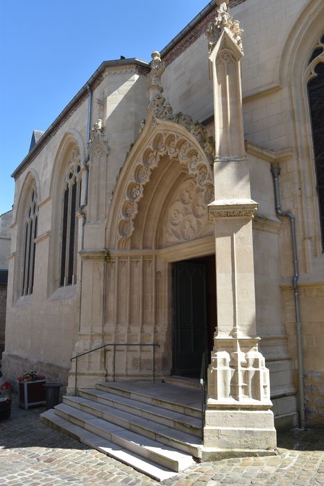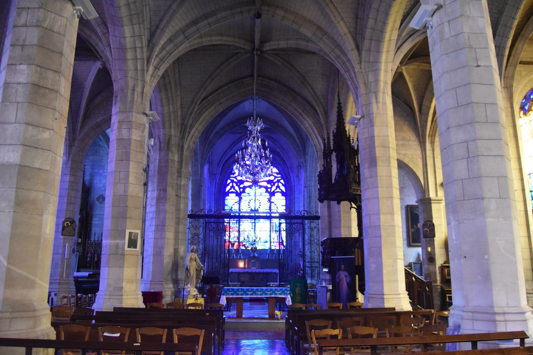 Edifice reconstruit à partir du milieu du 16e siècle (1535) , et achevé à la fin de ce siècle. Restauré suite aux guerres et aux sièges du 17e siècle. A la Révolution, l'édifice est vidé de son mobilier et endommagé. L'église est rendue au culte et restaurée au début du 19e siècle. Commencés dans les années 1840, les travaux s'achèvent en 1853 par la reconstruction du portail sud, sculpté par Lecompte-Roger. Après les dommages causés par la Première guerre mondiale, l'édifice est restauré en 1931, et augmenté de la sacristie. Une voûte d'ogives recouvre l'ensemble de l'édifice.