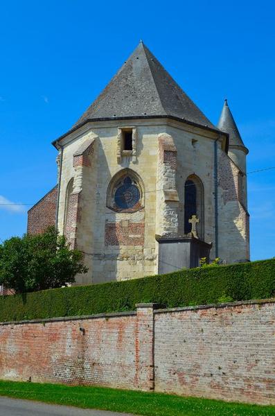 Eglise composée de trois parties : un donjon de pierre, de plan carré, à deux niveaux, avec les restes d'une échauguette et des meurtrières à l'étage supérieur (seul fortifié) , une nef surbaissée vraisemblablement reconstruite au 17e siècle, un choeur daté de 1537, à deux niveaux, une tourelle percée de meurtrières qui permet de gagner la salle de refuge de l'étage supérieur, garnie de deux échauguettes et de quatre meurtrières. Eglise peu homogène, mais dont le choeur a probablement servi de modèle à ceux de Renneval et Morgny.