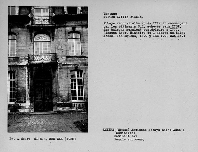 © Monuments historiques, 1992. Cette notice reprend intégralement les termes de l’arrêté de protection au titre des Monuments historiques. Elle répond à l’obligation réglementaire du ministère de la Culture d’établir la liste générale des immeubles protégés (art. R. 621-80 du Code du patrimoine). Elle est donc opposable et fait foi juridiquement. Aucune copie numérique ou papier ne sera fournie par courrier ni courriel. Le dossier de protection complet et l’arrêté sont consultables uniquement sur place, dans la salle de lecture de la Médiathèque du patrimoine et de la photographie (MPP), à Charenton-le-Pont (Val-de-Marne).