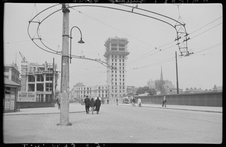 Tour de 103 mètres de hauteur, conçue par l'architecte Auguste Perret en 1942 et construite de 1950 à 1954 dans le cadre de la reconstruction de la place Alphonse-Fiquet. Réalisée en béton armé, la tour, de plan carré, compte 30 étages de logements. A la fois beffroi-campanile, tour-monument et immeuble résidentiel, elle symbolise la reconstruction d'Amiens après la Seconde Guerre mondiale, se détachant sur le profil de la ville à côté de la flèche de la cathédrale.