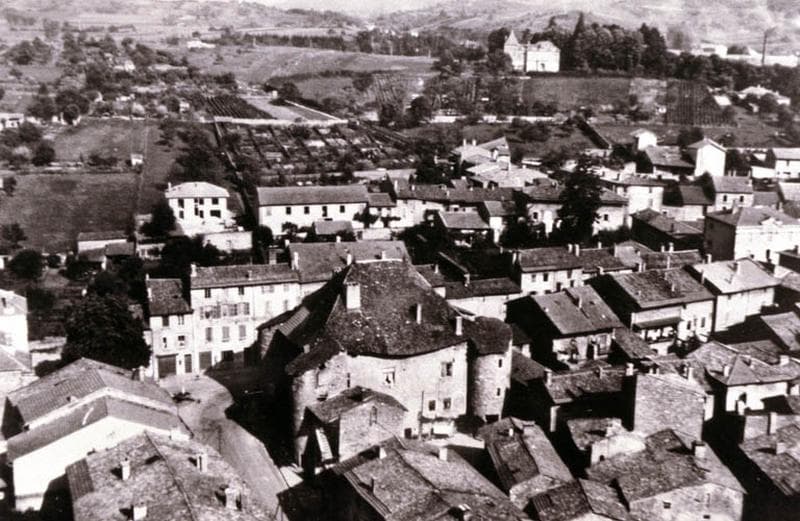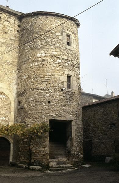 Vers la fin du 14e siècle, Aynard de Montferrand obtint des syndics de Lagnieu une tour des fotifications de la ville, qui servit peut-être de base à la construction du château. Vendu comme bien national à la Révolution, et divisé en lots qui amenèrent d'importants réaménagements intérieurs et l'arasement des tours. Au premier étage subsistent deux grandes cheminées gothiques. Le décor intérieur comprend également des fenêtres à coussièges, des volets du 17e siècle, des plafonds à la française et une pièce conservant des peintures murale représentant une scène de tournoi. Le château reste un témoignage des forteresses urbaines de la fin du Moyen-Age en Bugey. En 1974, la toiture est remplacée par une dalle de béton armé.