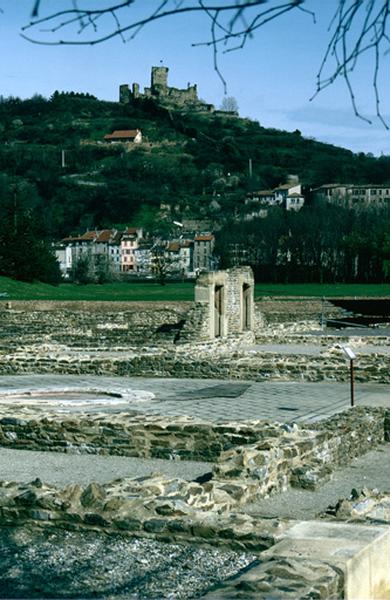 Le site est occupé par un habitat et des ateliers de potiers vers 30 avant JC au plus tôt. Le quartier est occupé par des maisons à péristyles, des entrepôts, des boutiques parfois accompagnées d'un habitat modeste et des ateliers d'artisans. Le quartier est limité au sud, dès le milieu du 1er siècle, par le complexe du "Palais du Miroir" qui séparait les quartiers antiques de Saint-Romain-en-Gal et Sainte-Colombe-lés-Vienne. Après un abandon au 4e et 5e siècle, quelques couvents semblent être établis dès le 5e siècle. La découverte de mosaïques polychromes au 18e siècle, et la conservation d'une partie des thermes du Palais du Miroir sont à l'origine du développement des recherches archéologiques sur cette rive.
