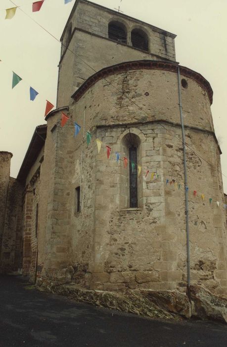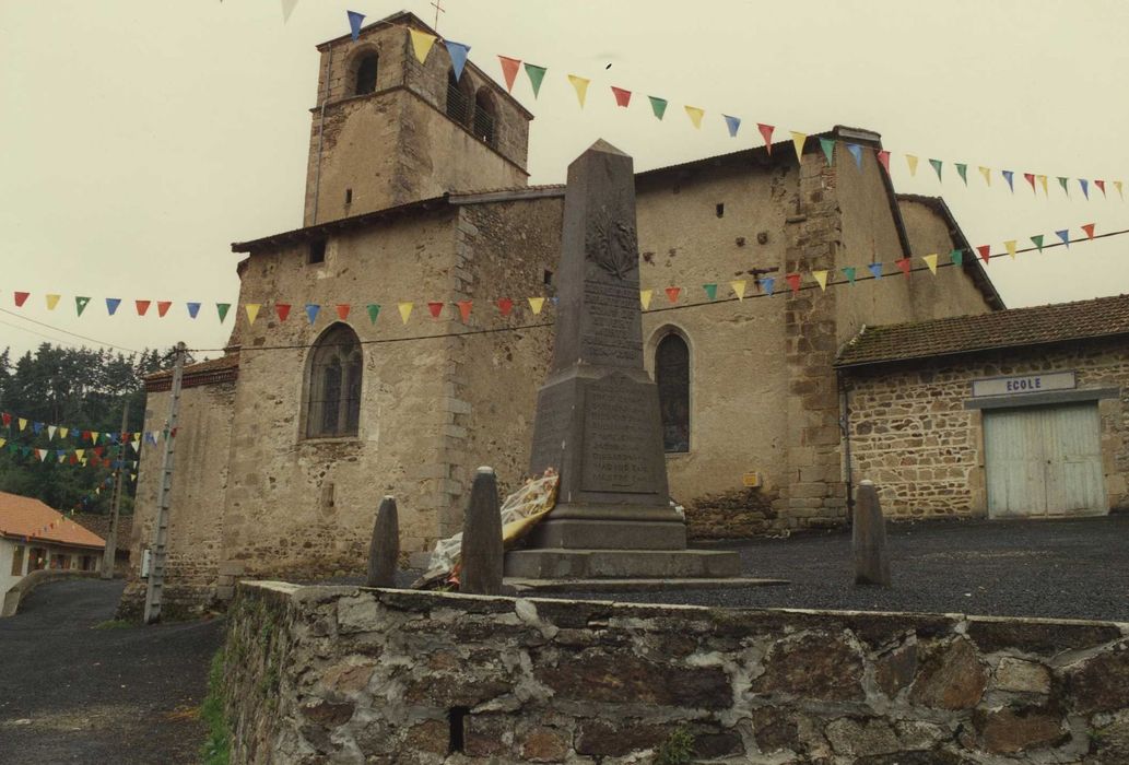 Eglise prieurale d'origine romane, dépendant de la Chaise-Dieu, conservant des éléments romans et gothiques. Elle a été agrandie et en partie reconstruite au 15e siècle. £De l'époque romane, l'édifice conserve la nef. Le choeur et la chapelle nord ont été reconstruits au 15e siècle. Chevet semi-circulaire. Une tourelle demi hors-oeuvre, située sur la façade sud près du chevet, sert de tour d'escalier au clocher. A l'intérieur, les vitraux de la nef sont dus à Borie.