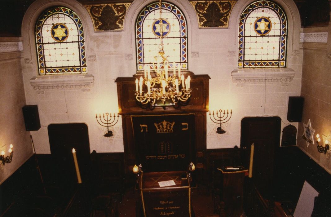 Synagogue construite en 1907 par larchitecte Victor Tondu avec laide financière du mécène Daniel-Osiris Iffla. La synagogue sintègre à larrière de lhabitation du rabbin, et conserve son plafond peint à compartiments en bois et une frise florale peinte, imitant une mosaïque.