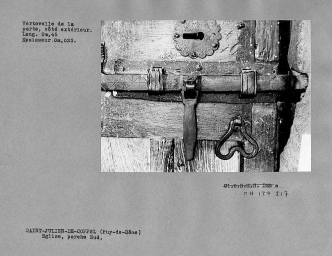 (c) Monuments historiques. Cette notice reprend intégralement les termes de l’arrêté de protection au titre des Monuments historiques. Elle répond à l’obligation réglementaire du ministère de la Culture d’établir la liste générale des immeubles protégés (art. R. 621-80 du Code du patrimoine). Elle est donc opposable et fait foi juridiquement. Aucune copie numérique ou papier ne sera fournie par courrier ni courriel. Le dossier de protection complet et l’arrêté sont consultables uniquement sur place, dans la salle de lecture de la Médiathèque du patrimoine et de la photographie (MPP), à Charenton-le-Pont (Val-de-Marne).