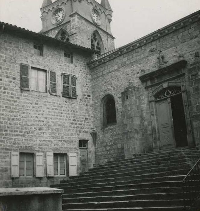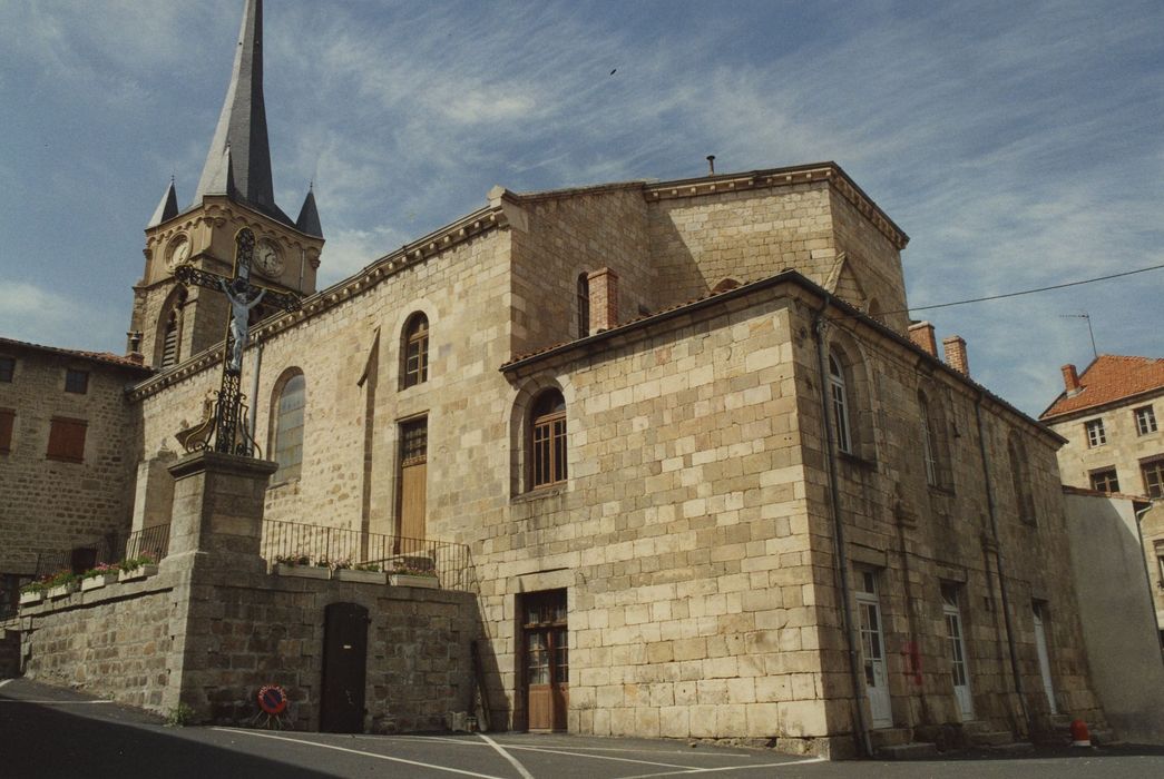 Eglise dépendant du monastère de la Chaise-Dieu. D'origine romane (deux travées de la nef) , abside et chapelles nord reconstruites au 15e siècle, collatéral sud ajouté au 17e ou 18e siècle. Restauration au 19e siècle et construction de quatre petits magasins de marché au-dessous de la sacristie (1855). Flèche du clocher élevée en 1864-1865.