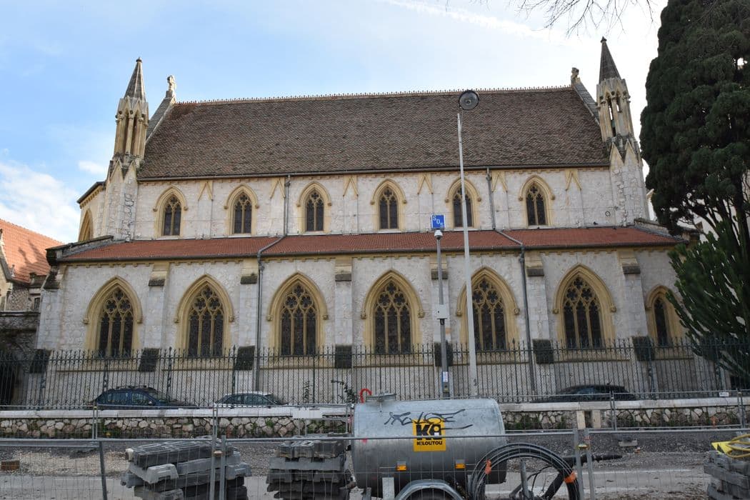 Devenue suffisamment nombreuse pour disposer de son propre lieu de culte, la communauté américaine de Nice obtint la création d'une paroisse épiscopalienne en 1873, qui prit le nom de Holy Spririt Church. En 1885, elle fit l'acquisition d'un terrain dans le quartier anglais de la Croix de Marbre. En 1886-1888, W.G. Abershon, architecte londonien réputé notamment pour ses constructions d'églises néo-gothiques, y élevait une église et un presbytère. Un ensemble de vitraux fut offert par de riches paroissiens, commandés à la firme londonienne Clayton and Bell. Passé à l'Eglise protestante de Nice en 1974, l'ensemble, particulièrement bien conservé, continue d'offrir, au coeur de la ville d'hiver, une séquence paysagère anglaise inchangée depuis la fin du XIXe siècle.